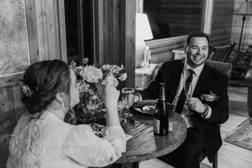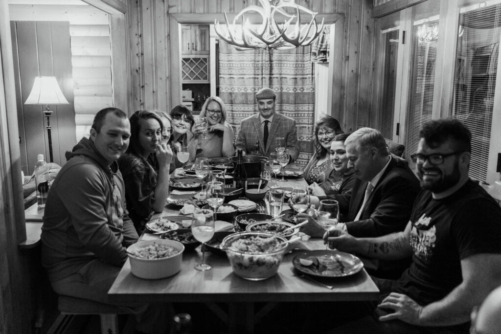 Back at the Airbnb, their family had brunch waiting. Eggs, fruit, coffee, laughter around the table. After the adrenaline of the sunrise hike, this slower rhythm felt exactly right. Lauryn and Austin spent the afternoon getting ready, napping, gathering their energy. A full-day Rocky Mountain elopement timeline makes space for these in-between moments that make the day even more special.