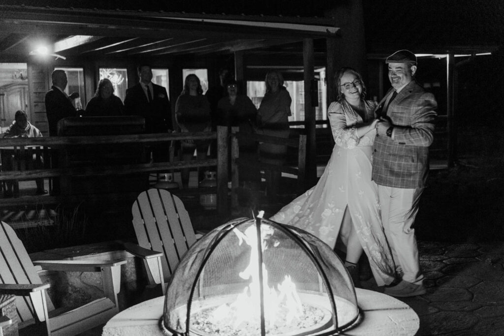 As the sun dipped behind the peaks and the sky faded from pink to deep blue, we headed back. Their family had prepared a taco dinner, and we gathered around the table for toasts that made everyone laugh and cry. Then first dances by the fire pit, the flames crackling and the stars beginning to emerge overhead.